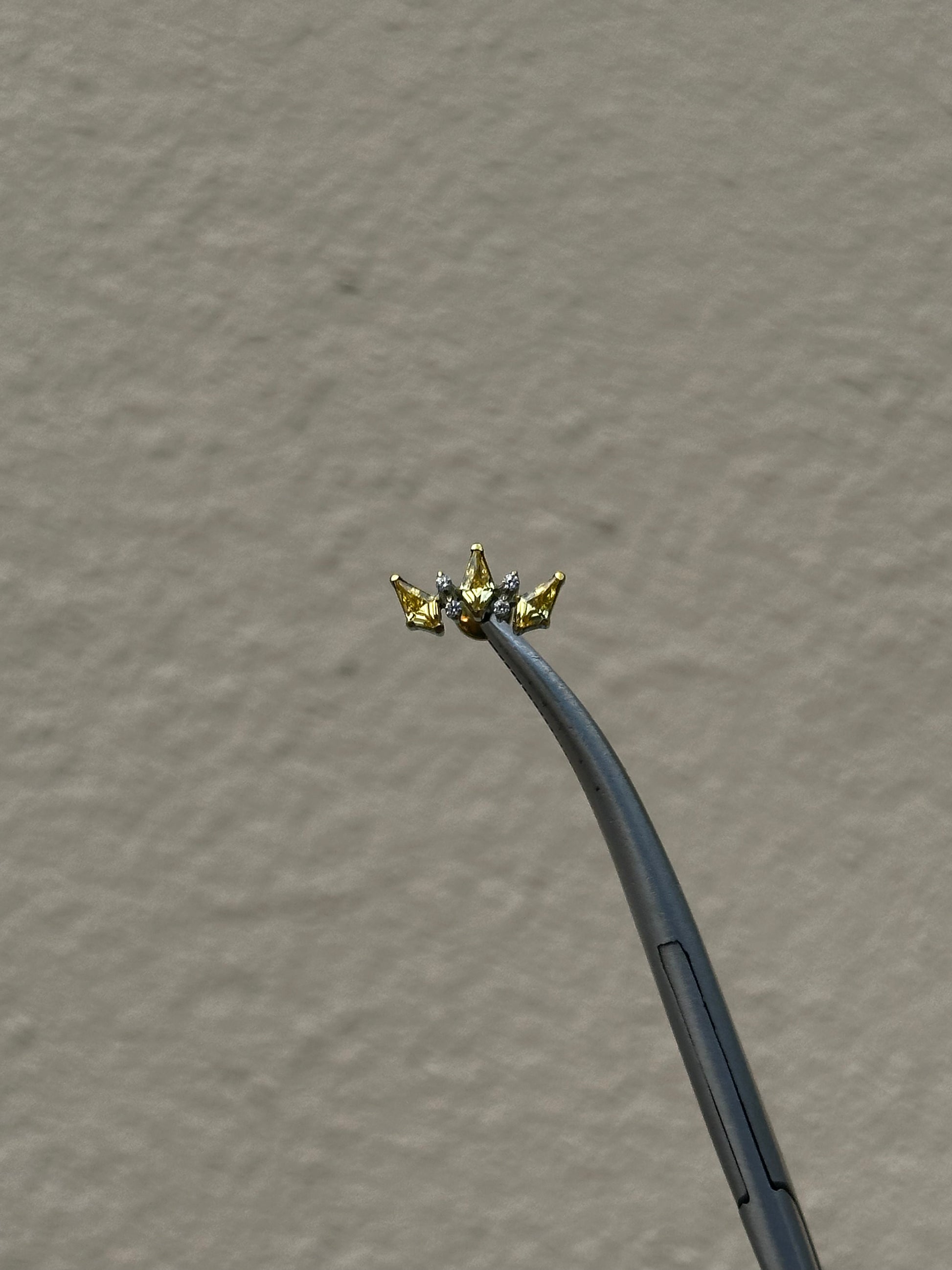 Hermosa pieza de titanio grado implante con piedras en color amarillo corte marquesa.